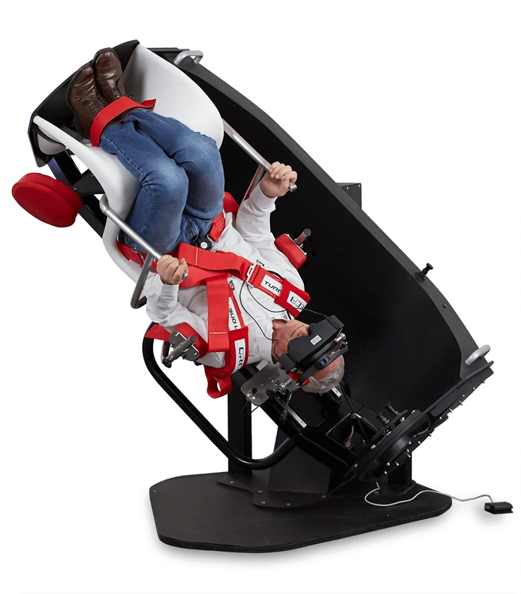 The TRV Chair is a unique tool for the diagnosis and treatment of benign paroxysmal positional vertigo (BPPV). With the TRV Chair, examiners can rotate their patients 360 degrees along the plane of each semicircular canal. It is also possible to lock the patient in any position for a detailed look at each semicircular canal.
